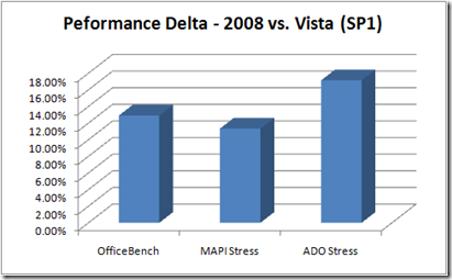 The actual test scenarios involved a straight execution of the OfficeBench test script (in a 10-iteration loop) as well as a separate multi-process workload package featuring the ADO, MAPI and WMP Stress workload generation objects (executing continuously for 10 minutes in a 3x3x3 multi-instance configuration).